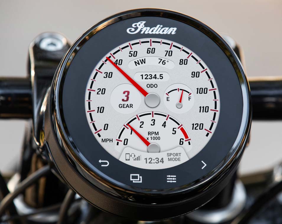 Dizajnové detaily sa stretávajú s modernou funkciou so špičkovým 4" displejom poháňaným systémom RIDE COMMAND. Odomknite GPS navigáciu, konektivitu Bluetooth®, jazdné štatistiky a ďalšie, aby ste zvýšili svoj zážitok z jazdy. Ešte lepšie je odomknutie predinštalovaného RIDE COMMAND+, ktorý ponúka Bike Locator, Bike Health a ďalšie, aby ste mohli zostať v spojení a informovaní (funkcie a možnosti pripojenia sa líšia podľa lokality).