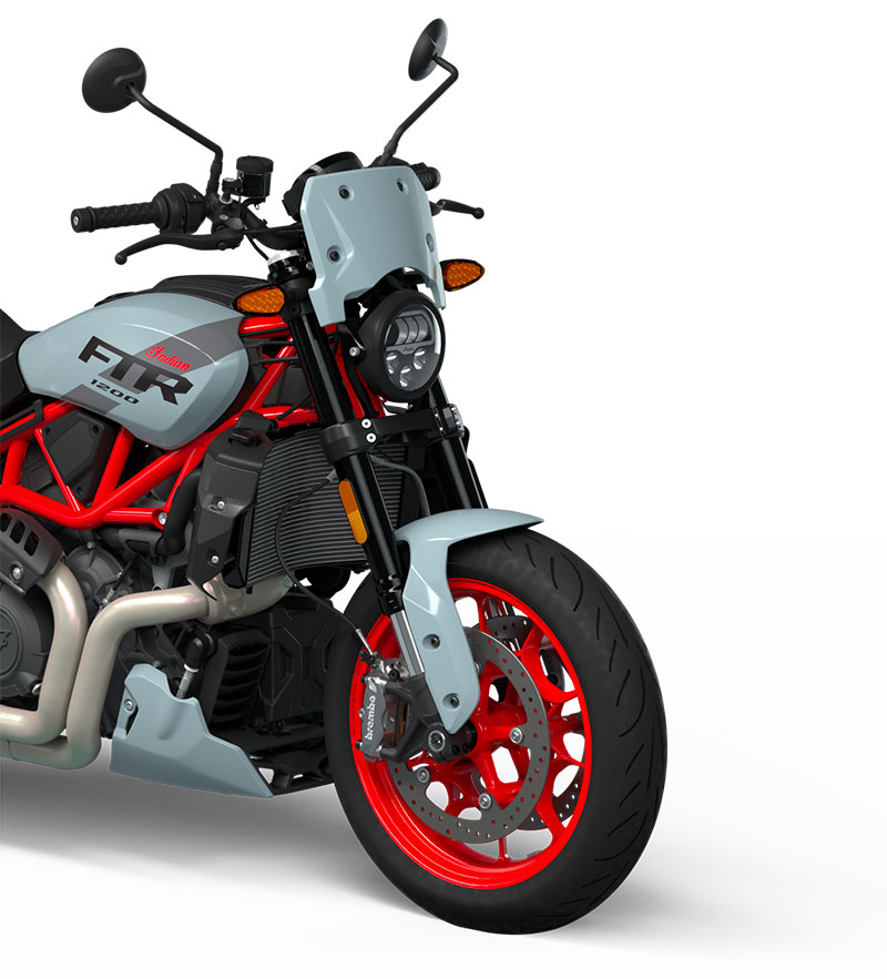 Nový FTR, pôvodne navrhnutý podľa nášho dominantného stroja na plochej dráhe FTR 750, ktorý vyhral šampionát, je plne optimalizovaný pre maximálny výkon na ceste, kde dominujú skutoční jazdci. Ľahké 17-palcové liate kolesá vpredu aj vzadu sú obuté do priľnavej pneumatiky Metzeler Sportec.